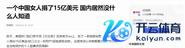有东说念主数落她胁肩谄笑,有东说念主质疑她捐钱的果然性,还有东说念主月旦她不顾国内的扶贫行状,却将巨资捐给野活泼物。