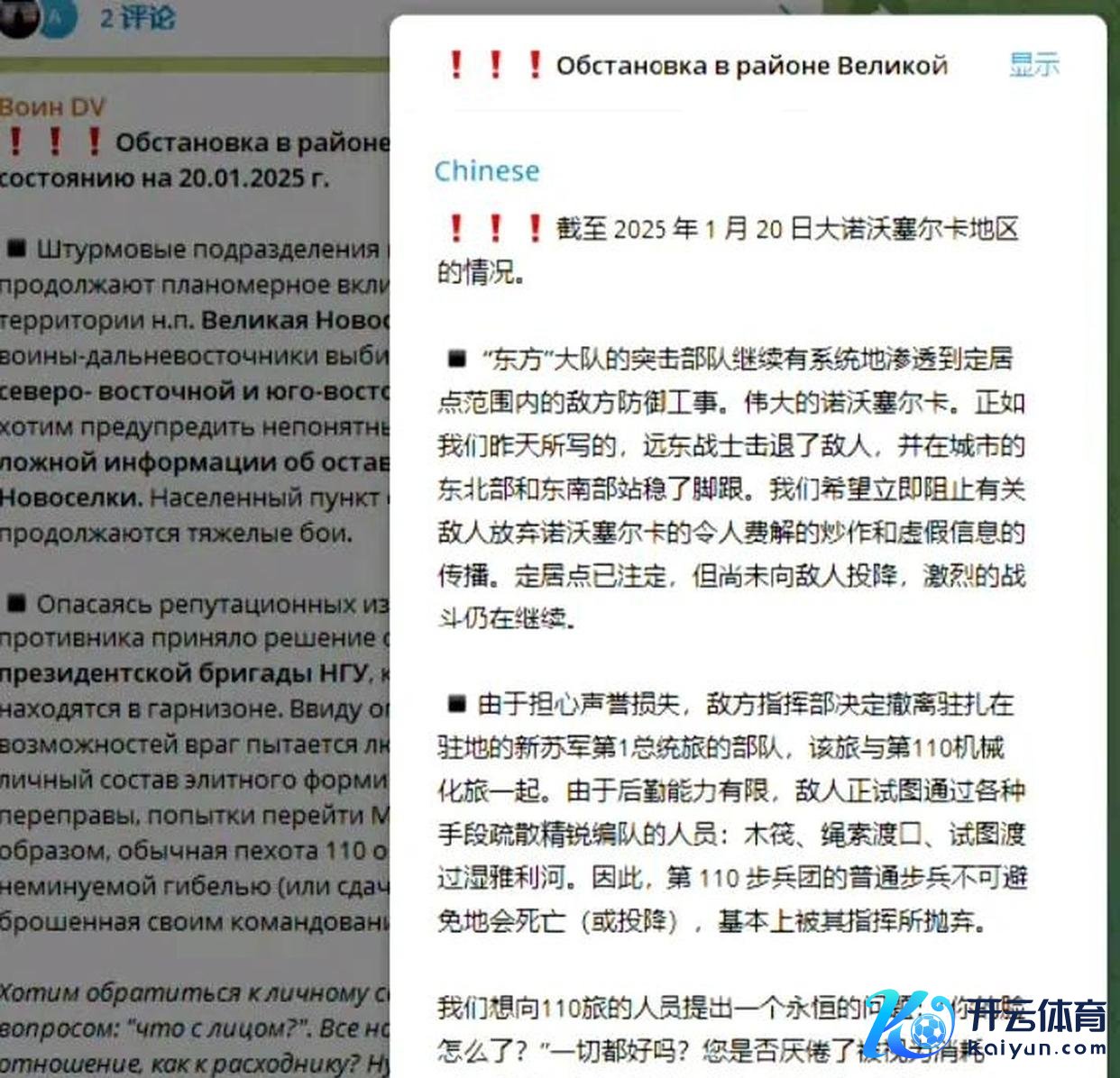大诺沃西尔卡开云体育(中国)官方网站,一月二十四日早晨,俄军东部集群酌量部向第110机械化旅残余队列下达终末通牒。