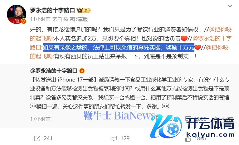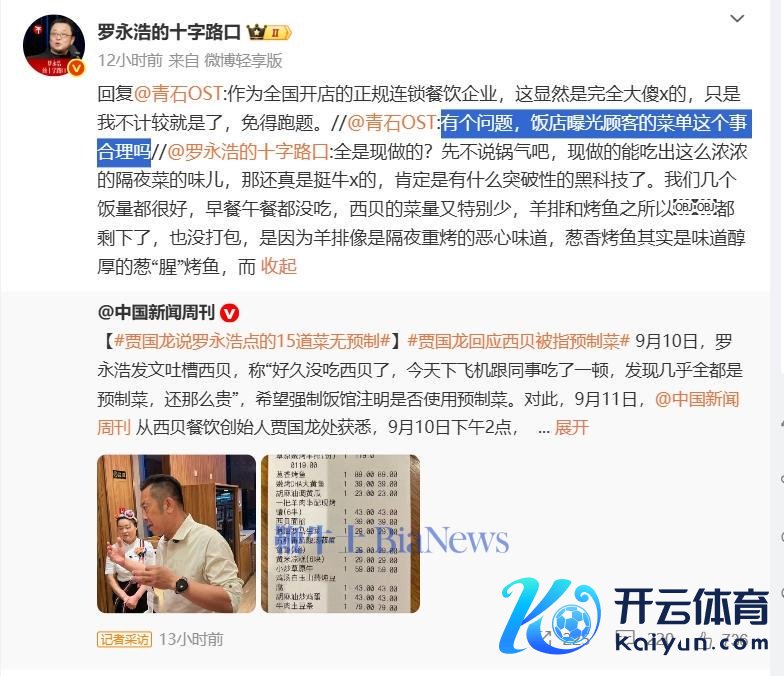 你的位置:开云「中国」kaiyun体育网址登录入口 > 新闻动态 > 开云(中国)kaiyun网页版登录入口开云体育罗永浩转发了一条质疑西贝作念法的微博-开云「中国」kaiyun体育网址登录入口