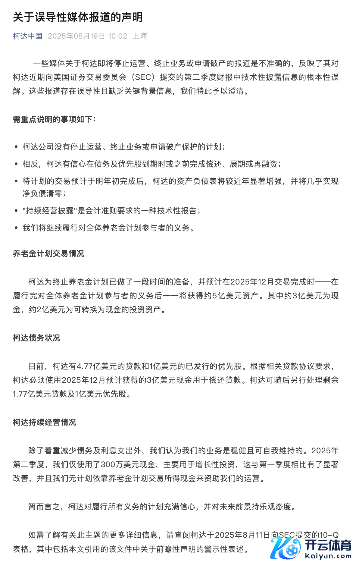 柯达公司知晓:莫得住手运营、圮绝业务或苦求歇业保护的规划柯达公司知晓:莫得住手运营、圮绝业务或苦求歇业保护的规划