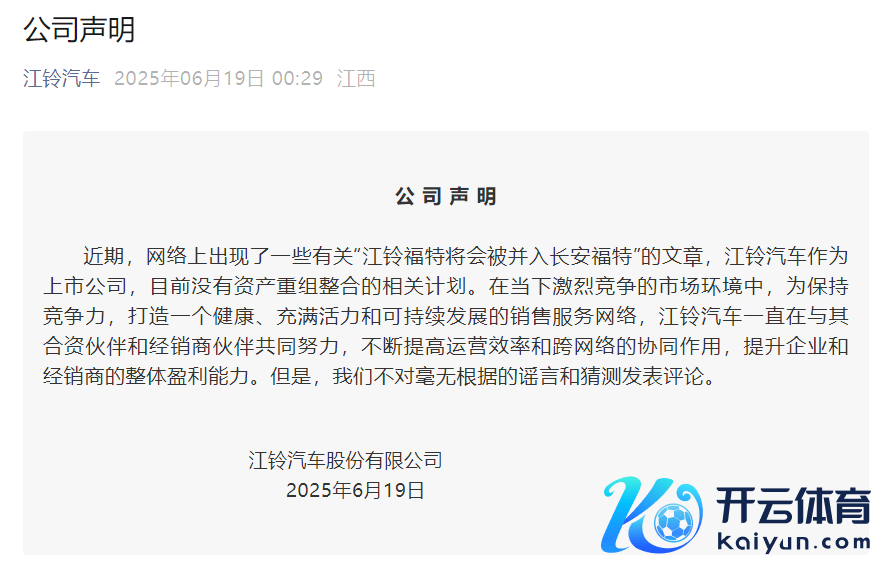 江铃福特将被并入长安福特?江铃汽车回答:当今莫得钞票重组整合有关规划江铃福特将被并入长安福特?江铃汽车回答:当今莫得钞票重组整合有关规划