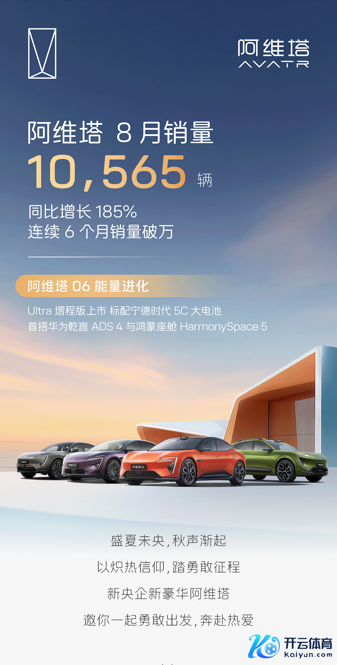 阿维塔:8月销量10565辆体育游戏app平台,同比增长185%阿维塔:8月销量10565辆,同比增长185%
